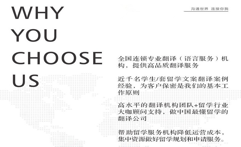 為確保文書質(zhì)量,公司專門抽調(diào)12名專職筆譯人員(大多具有留學行業(yè)背景并取得國家人事部翻譯資格證書)進行不間斷的專業(yè)培訓學習,以期更深入的了解國外院校申請的要求、流程以及個人陳述等關(guān)鍵文書撰寫和翻譯需要注意的要點。我們在拓展和細化語言服務領(lǐng)域的同時希望能夠利用我們強大的語言人才儲備力量幫助更多的國際教育機構(gòu)、海外院校、移民中介機構(gòu)等等提高共作效率降低運營成本,最終實現(xiàn)互利共贏的目標。